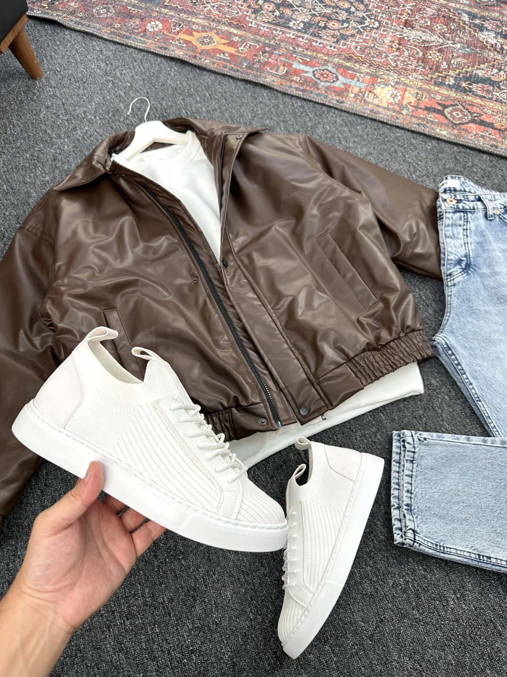 Kahverengi Bomber Oversize Deri Ceket x 10
