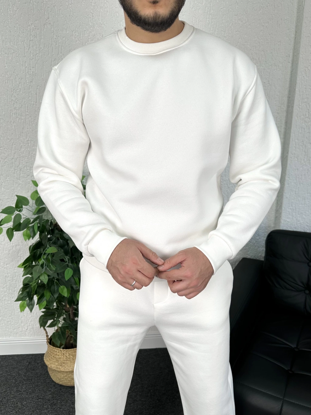 Beyaz Üç iplik şardonlu sweat