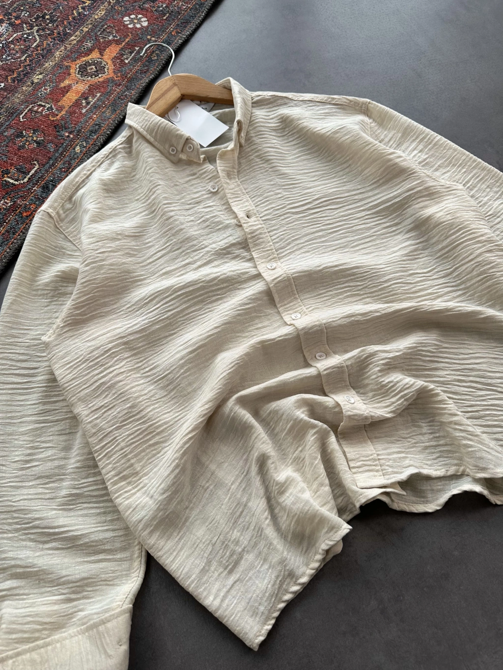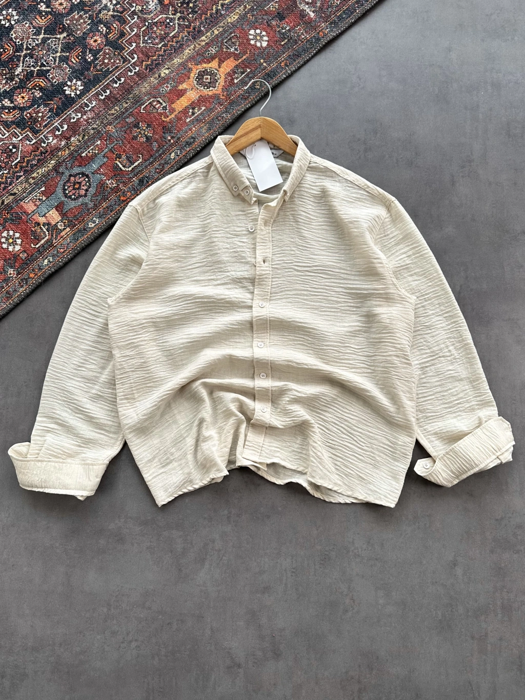 Erkek Bej Krinkıl Keten Kumaş Regular Fit Gömlek