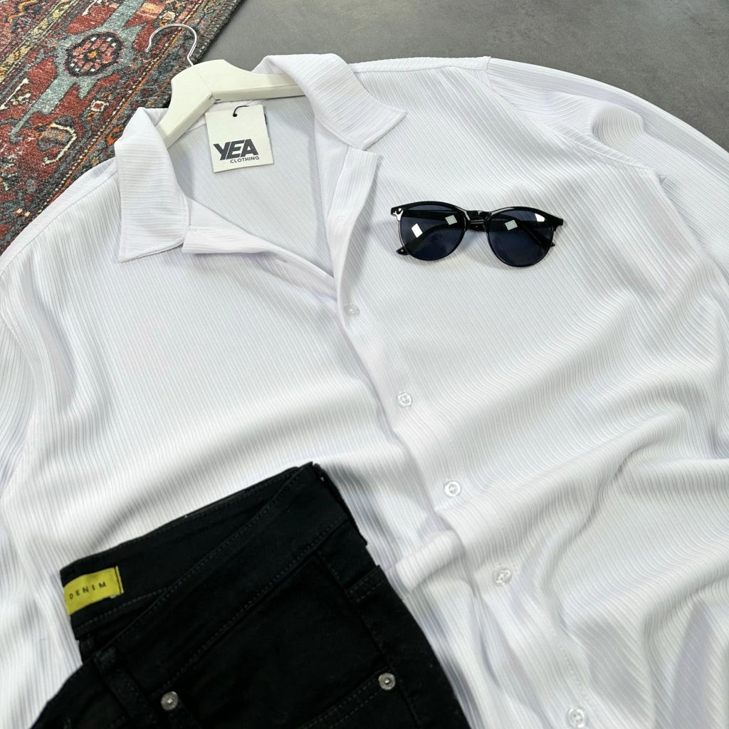 Erkek Beyaz Ottoman Fitilli Gömlek & Siyah Slim Fit Kot Pantolon 2'li Set