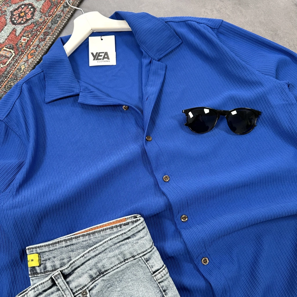 Erkek Lacivert Ottoman Fitilli Gömlek & Mavi Slim Fit Kot Pantolon 2'li Set