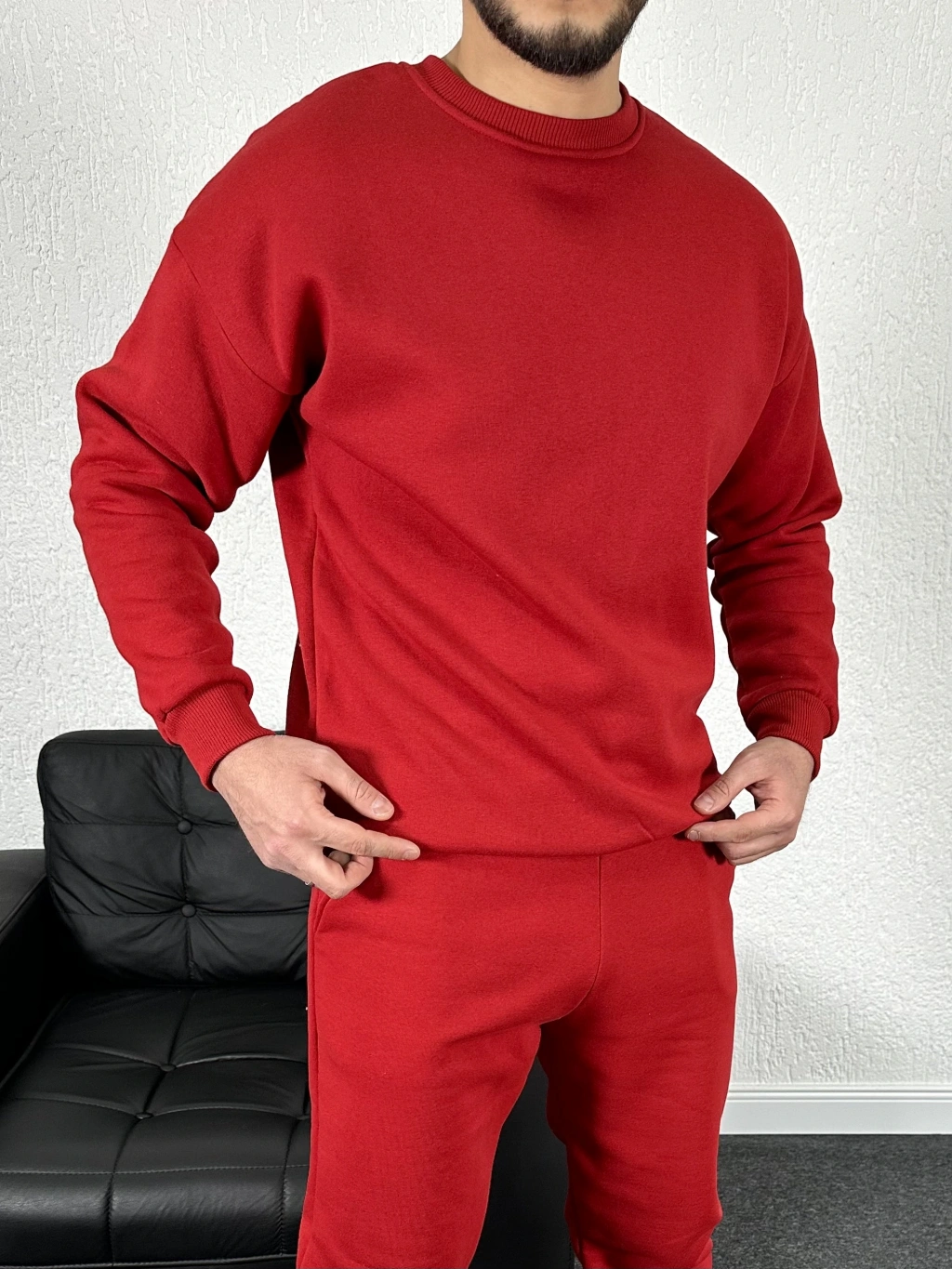 Kırmızı Üç İplik Bisiklet Yaka Sweat