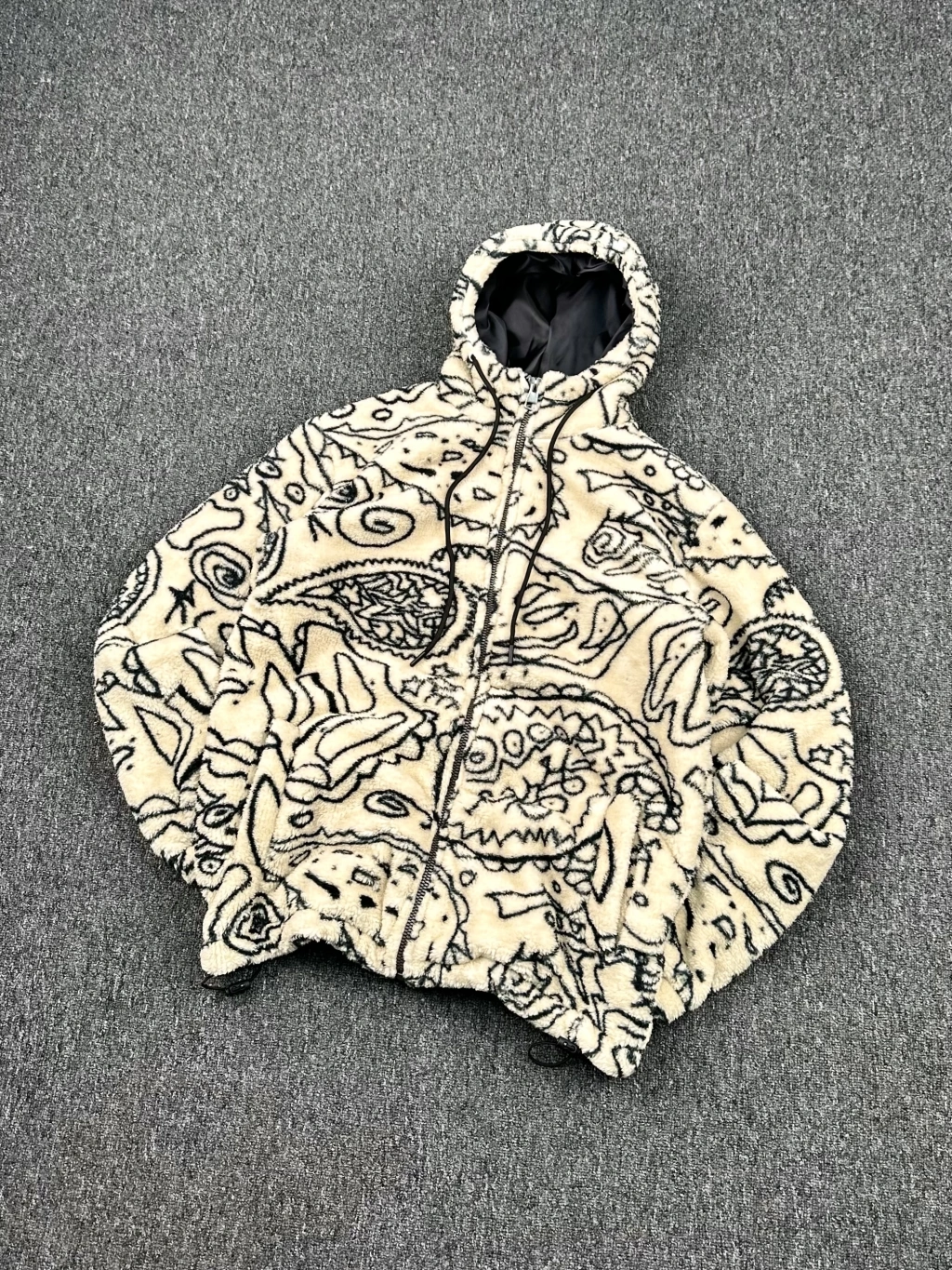 Yazı Desen Detaylı Peluş Ceket