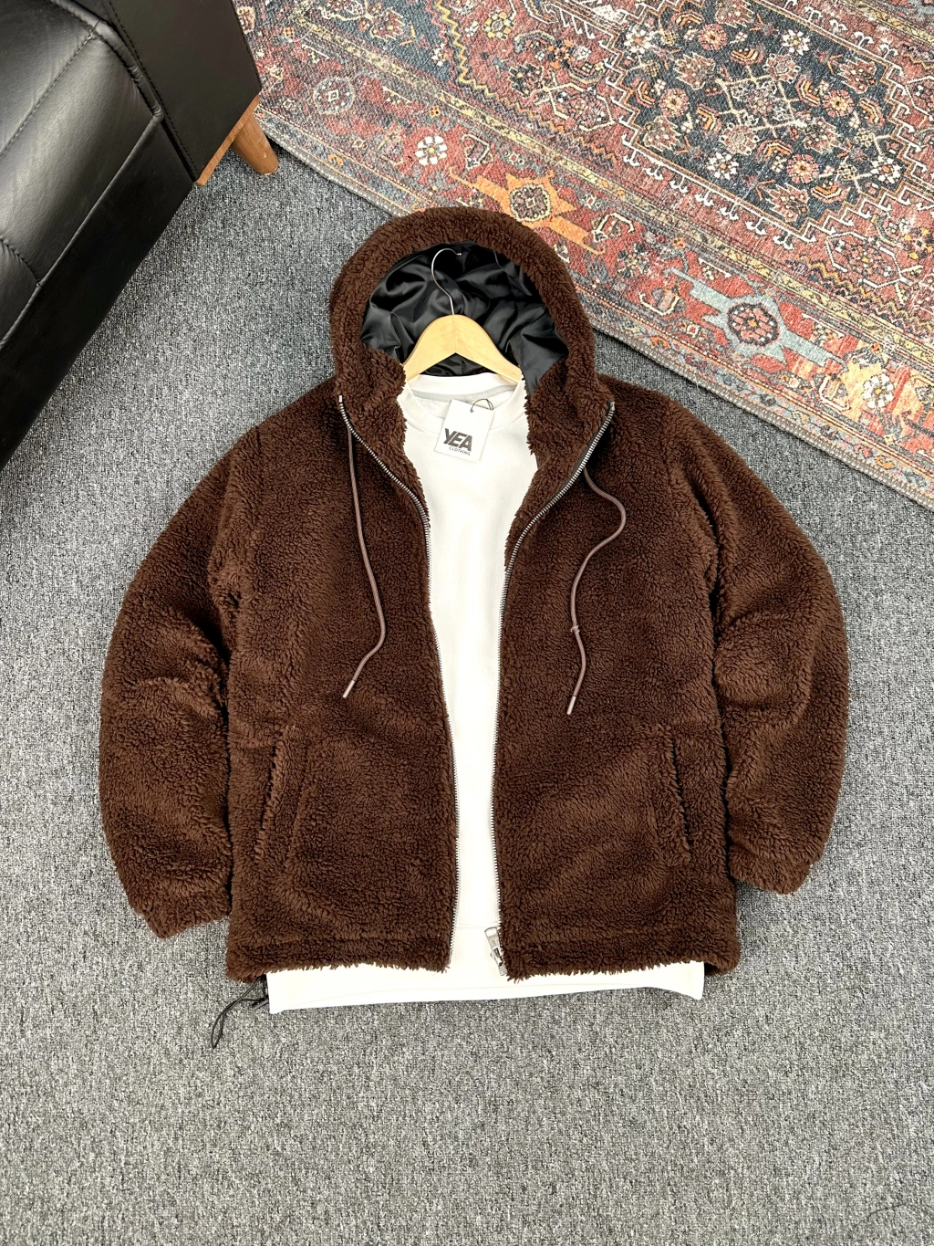 Kahverengi Astarlı Düz Peluş Ceket