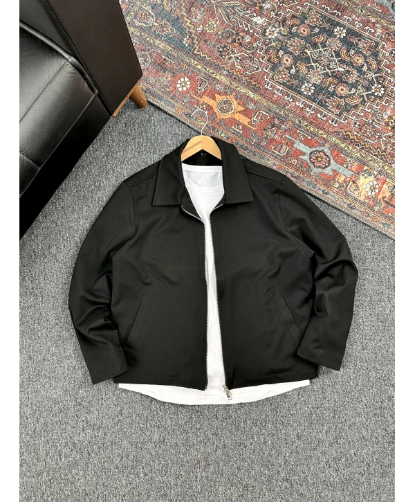 Siyah Gabardin Ceket Siyah Pileli Baggy Kumaş 2’li Set Kombin