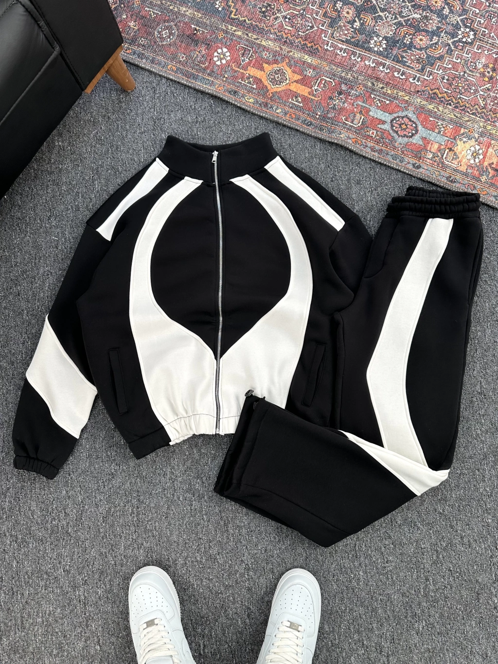 Siyah Üç İplik Şardonlu Parçalı Eşofman Takımı