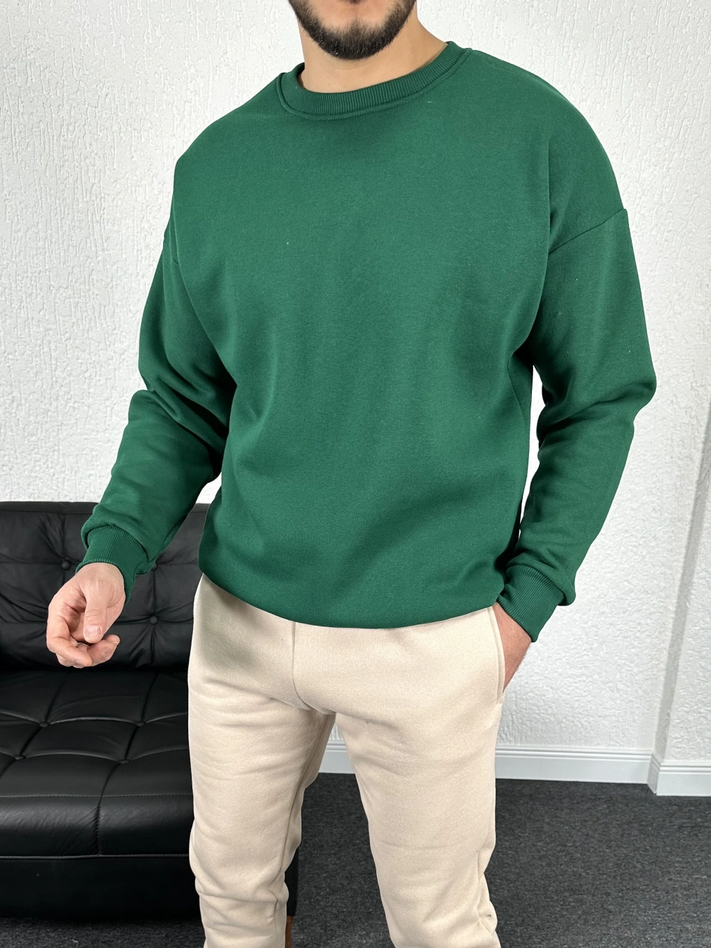 Yeşil Üç İplik Bisiklet Yaka Sweat